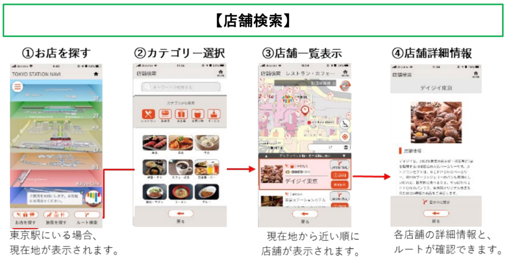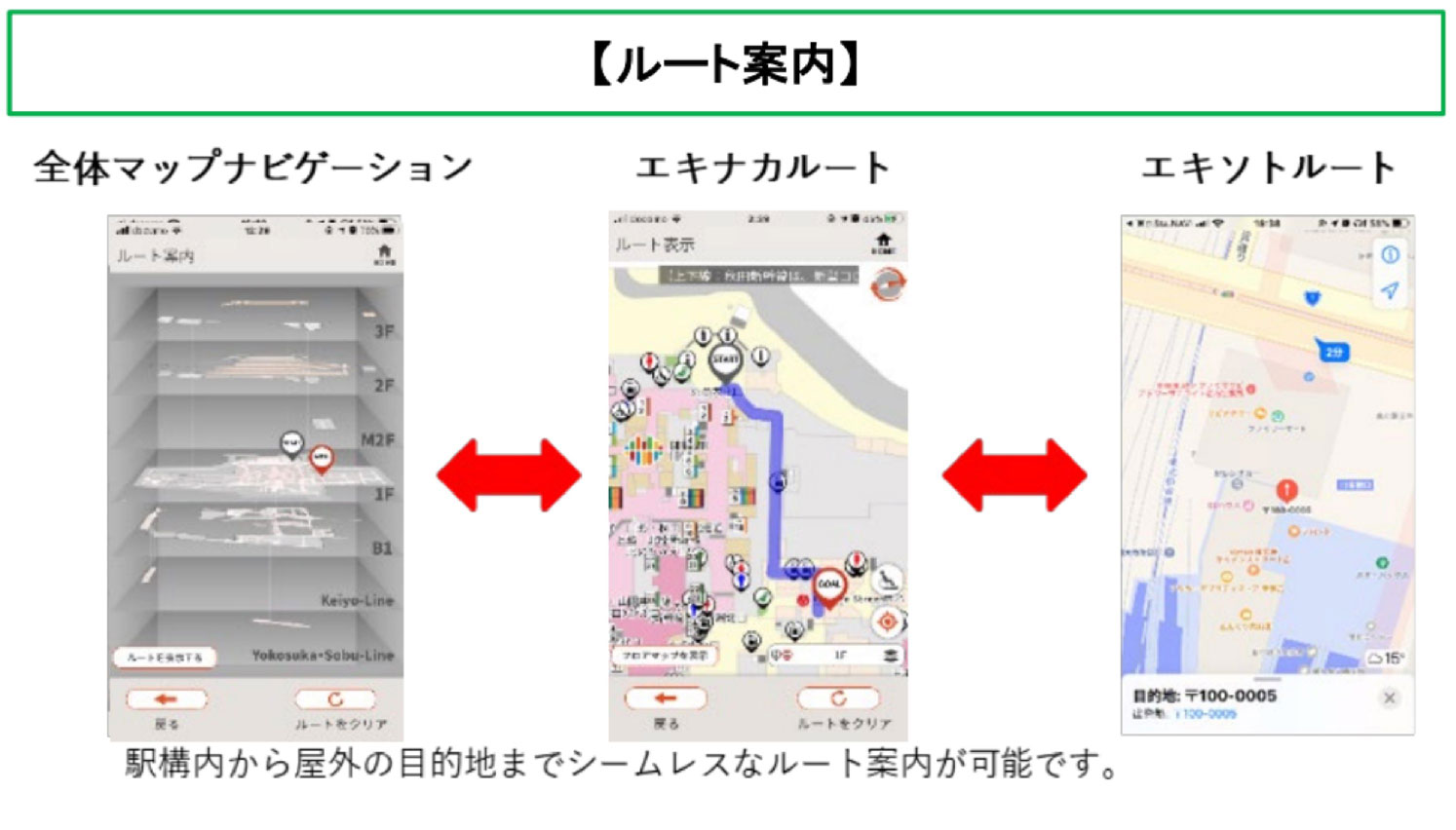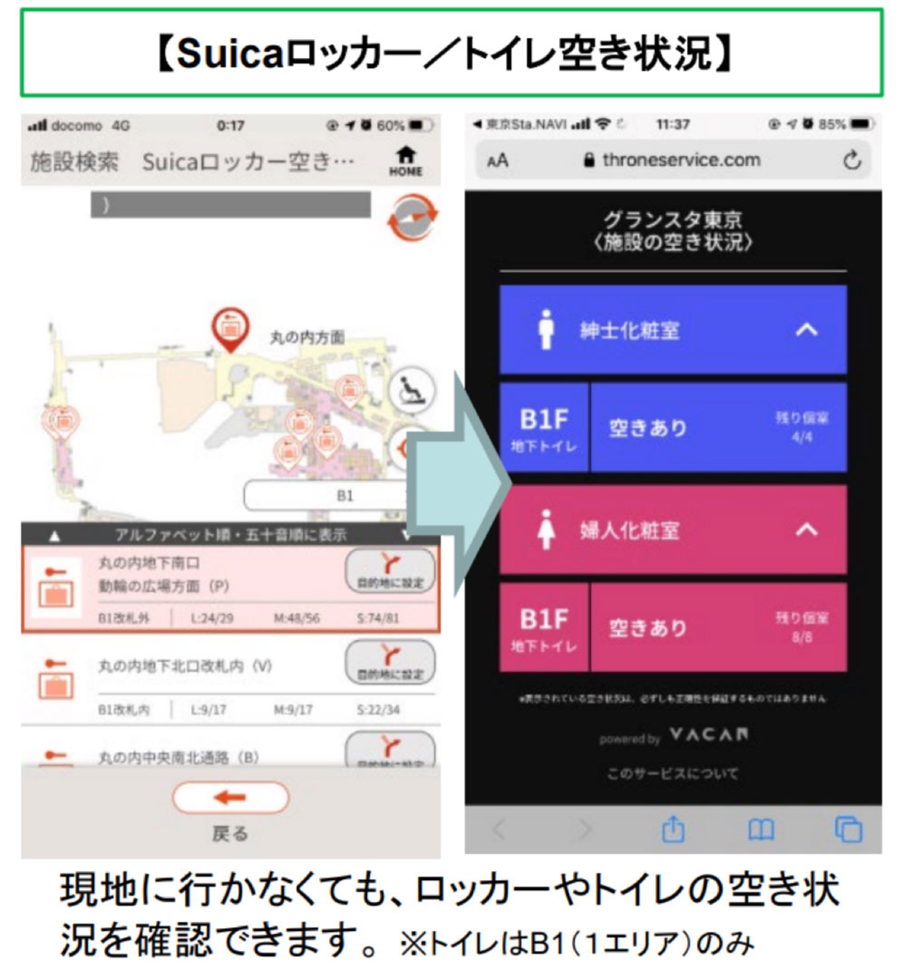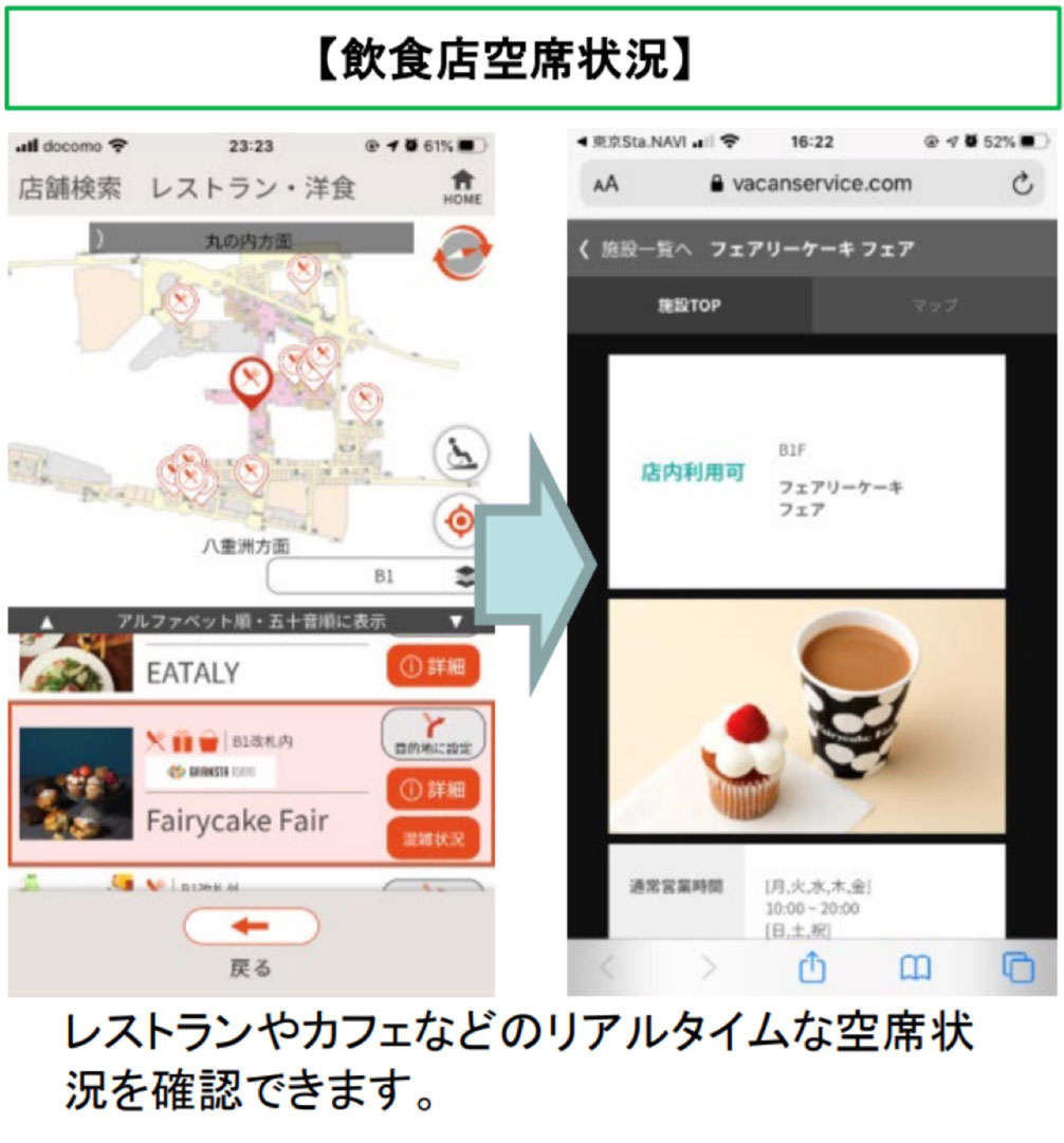 迷いやすく混雑しやすい東京駅を快適に変えるサポート機能をワンストップで提供するスマートフォンアプリを開発しました。東京駅構内の店舗や駅施設の情報と目的地までのルート案内をはじめ、車いすやベビーカーでのご移動に便利な、段差解消ルートを提供するナビゲーション機能に加え、店舗やロッカー・トイレなど混雑・空き状況の可視化やネット注文した商品を待たずに受け取れるサービスなど東京駅で過ごす時間を、より一層快適にサポートする機能をたくさん搭載しています。
